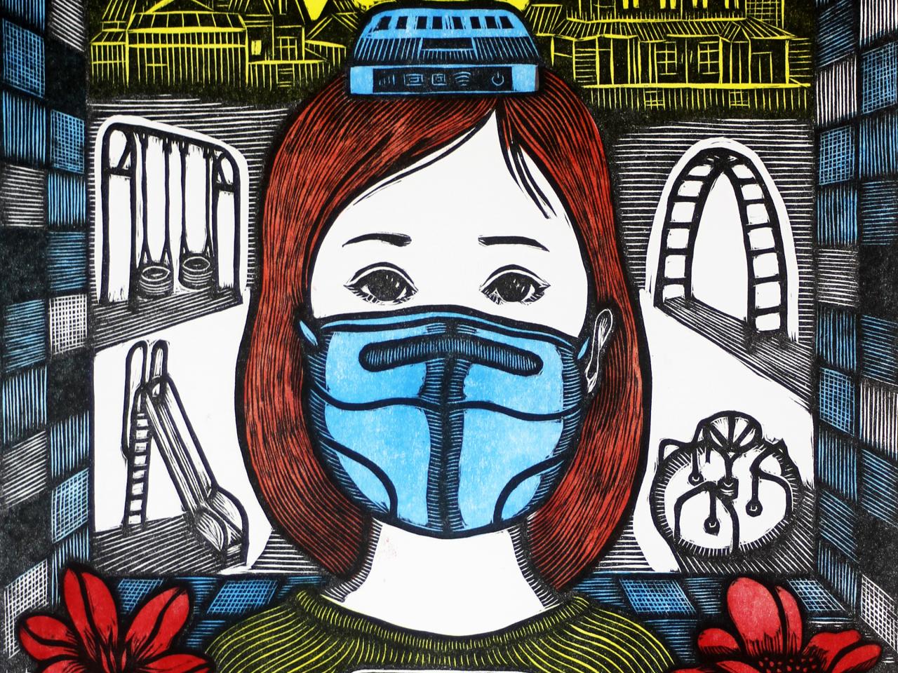 "Infancia confinada" - Xilografía - Carlos Vergara Rivera - 32,5 x 40 cm.