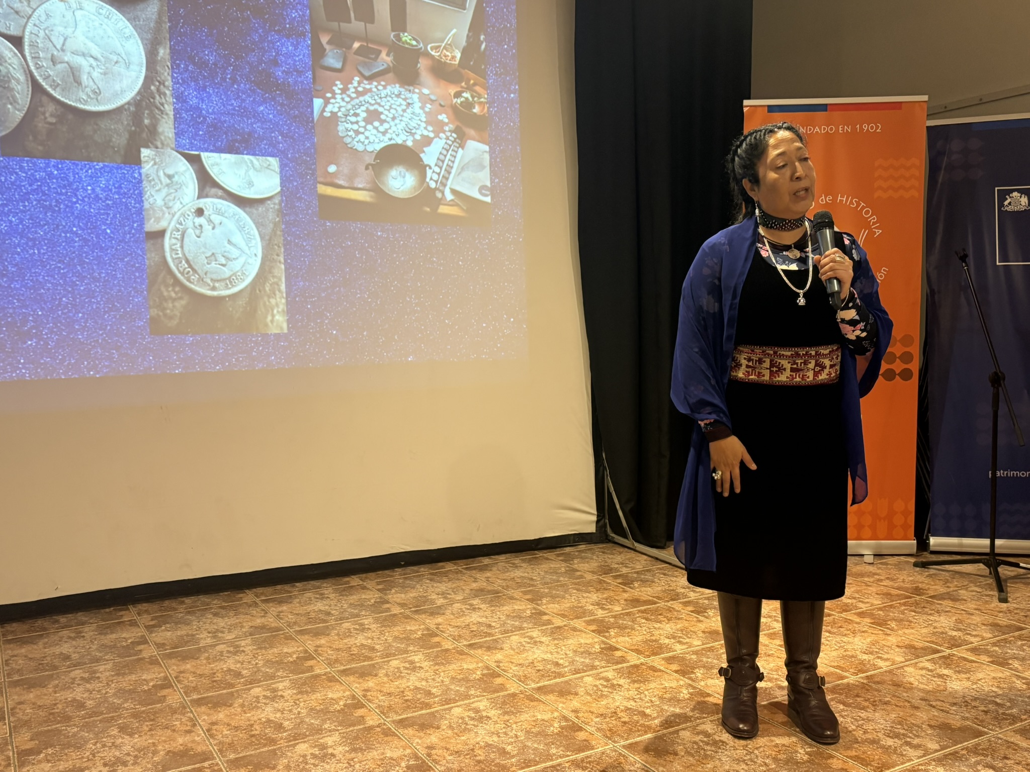 La segunda actividad realizada en el Museo fue la charla “Símbolos de la tierra. Platería y cosmovisión mapuche”, realizada por la retrafe Celeste Painepan, ocasión en la que habló sobre los orígenes y símbolos que guarda una joya, y de cosmovisión.