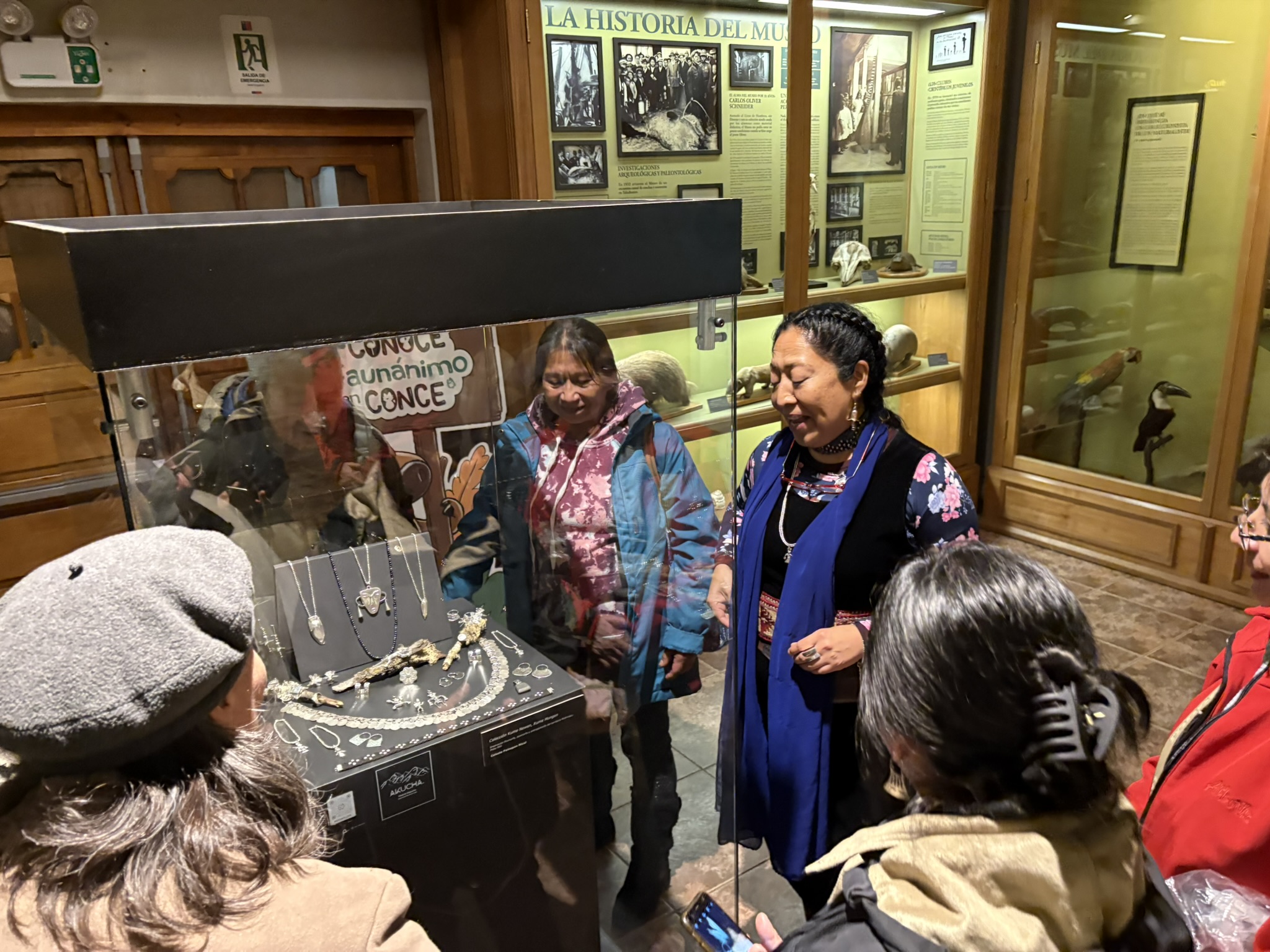 Esta charla incluyó la visita y la mediación realizada por la propia Celeste Painepan en torno a la vitrina de joyas mapuche que forma parte de la muestra permanente del Museo.